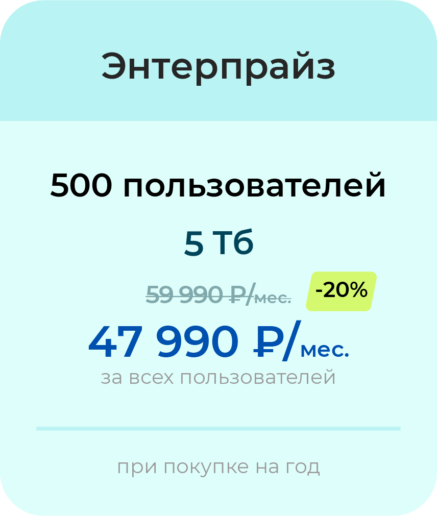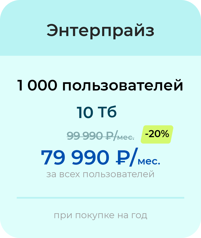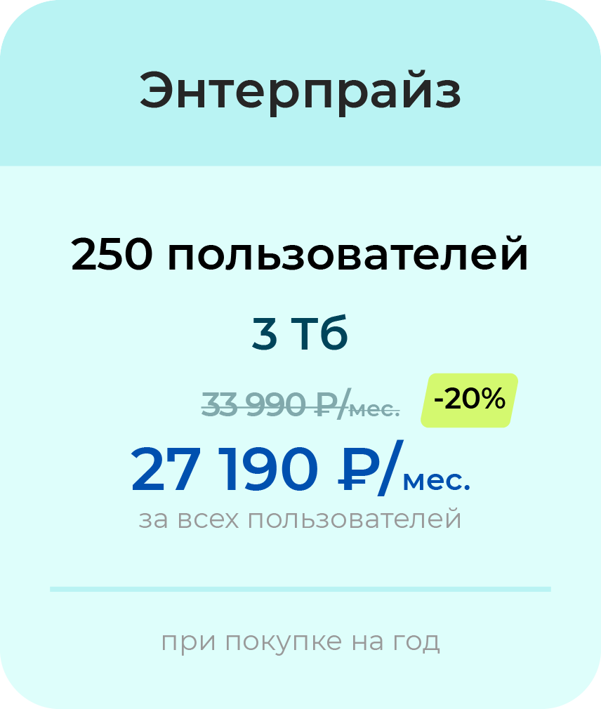 Новый тариф Энтерпрайз создан специально для СРЕДНИХ и КРУПНЫХ КОМПАНИЙ— на 250, 500, 1000 и более сотрудников.