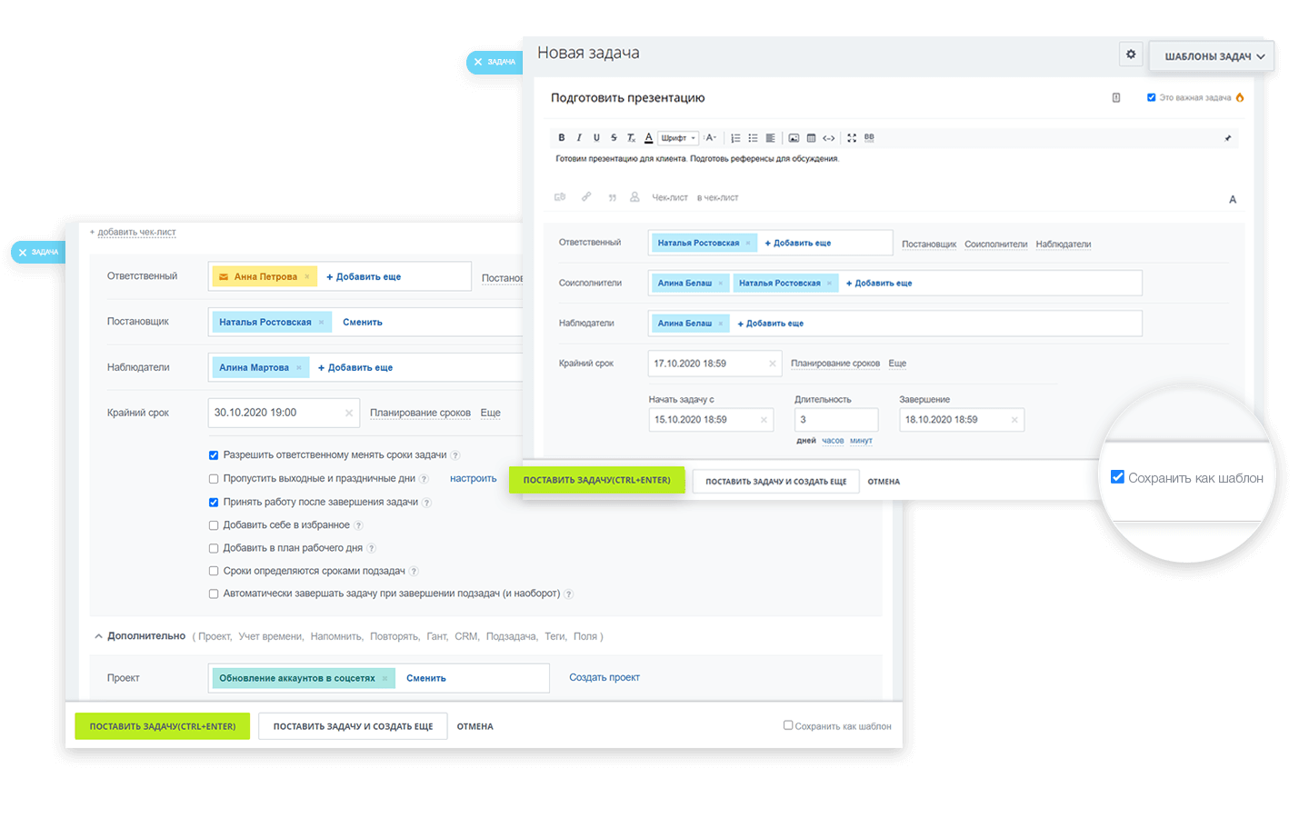 Чтобы завершить работу, исполнитель должен будет скинуть итог в комментарий к задаче и пометить его как результат.