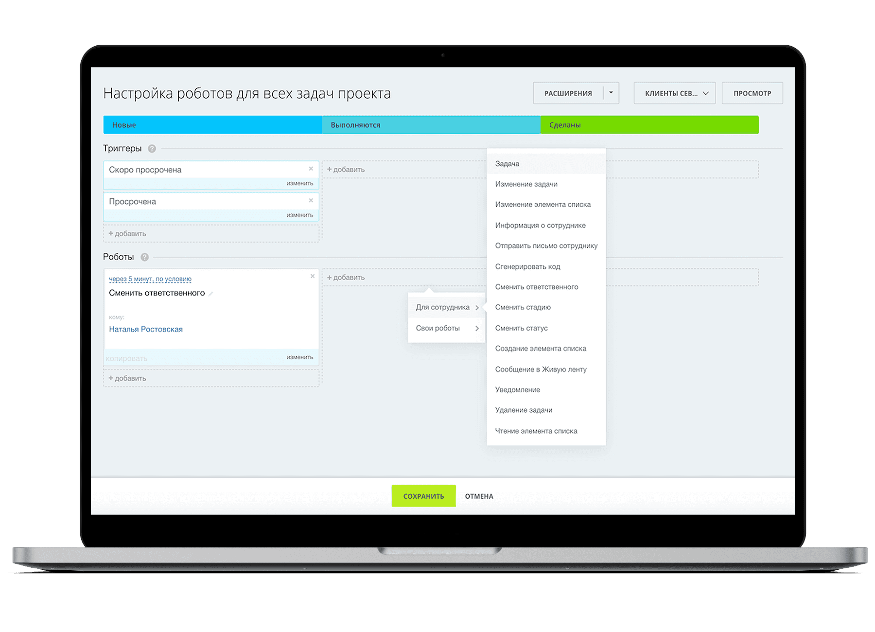 ✔️ поднимает в верх списка задачи и проекты, в которых нужно ваше участие прямо сейчас.