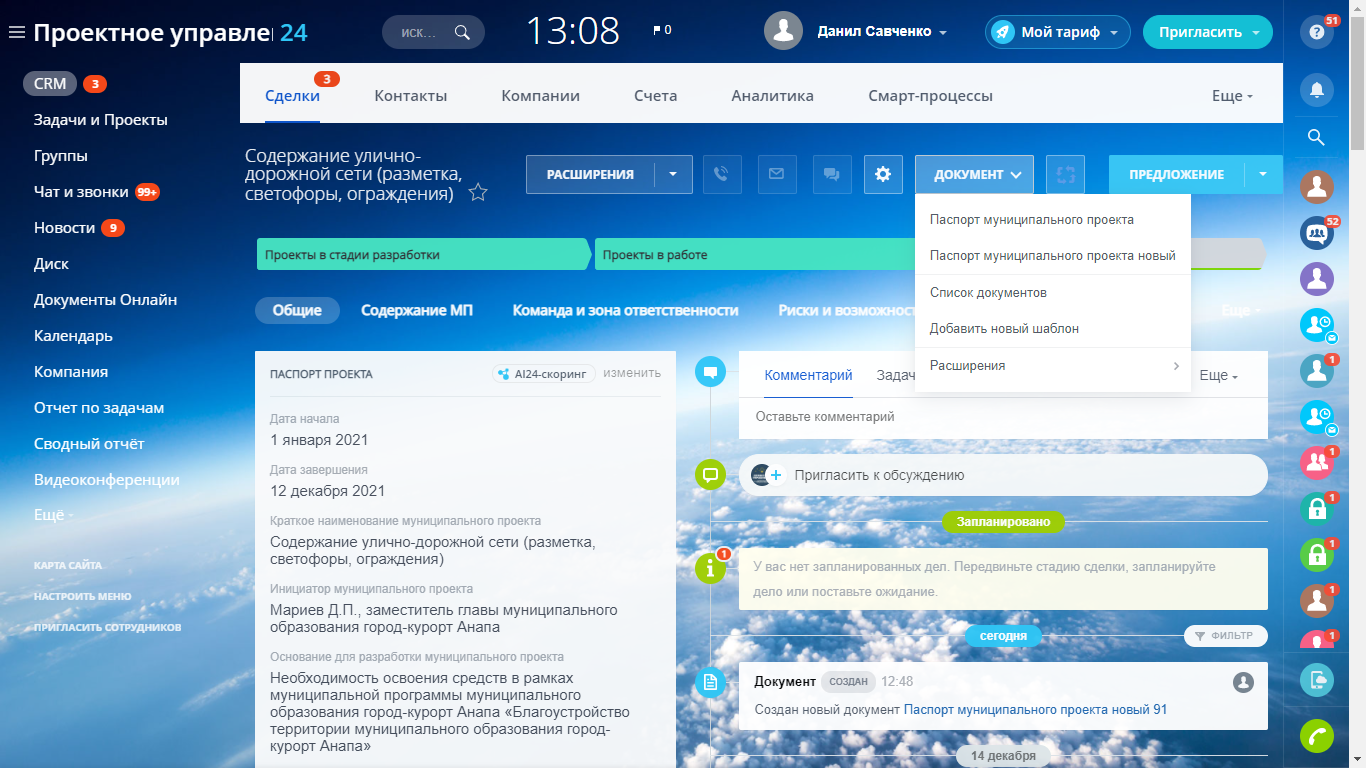 Наша система мониторинга проектов, построенная на платформе Битрикс24, представляет собой инновационное решение для управления национальными, государственными, региональными и муниципальными проектами. Она разработана с учетом уникальных потребностей администрации города, предоставляя инструменты и функциональность, которые делают процесс управления проектами более прозрачным, эффективным и результативным.